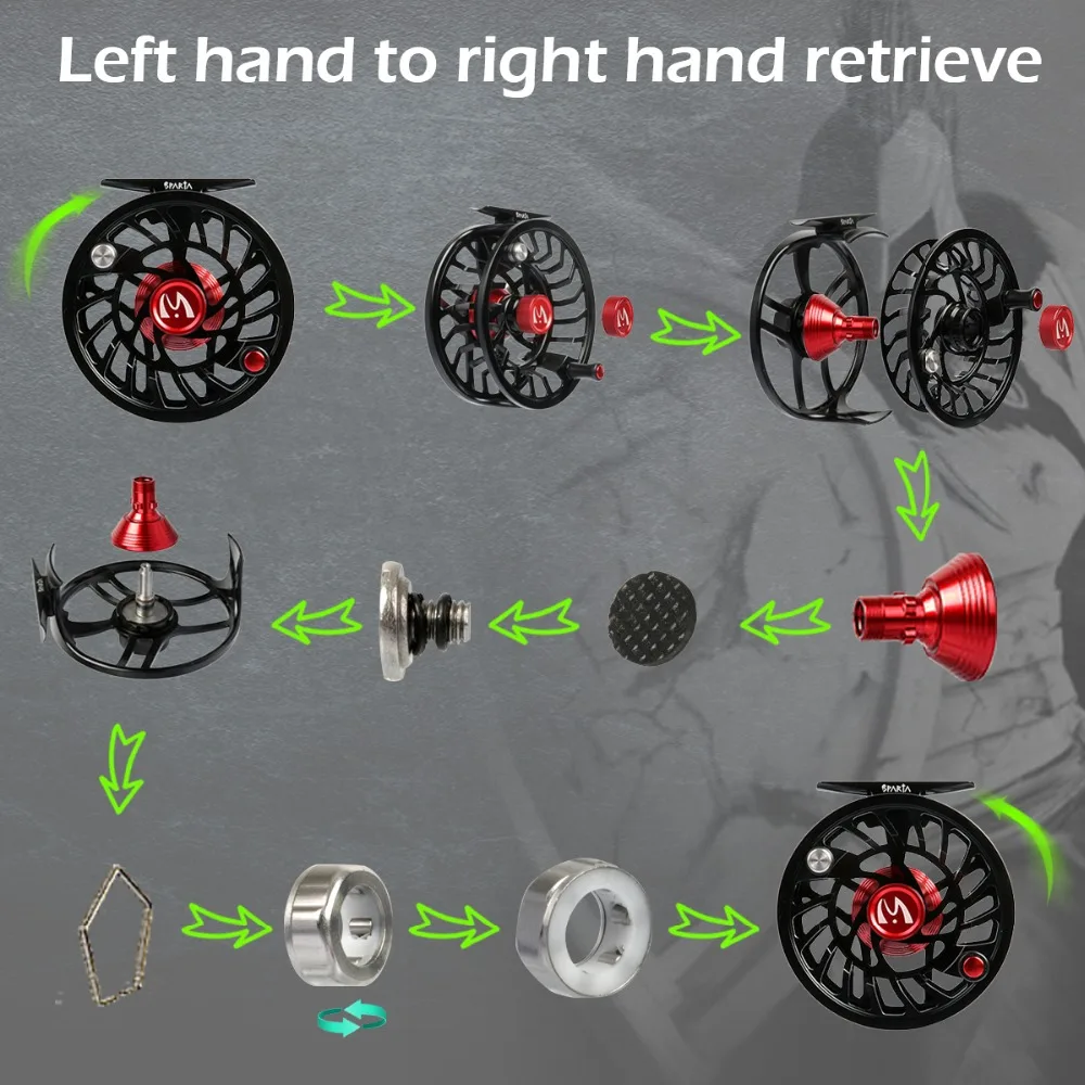 Large arbor spool for swift line retrieval that will really benefit to land larger fish. and easy no-tools needed left and right hand retrieval change. Tippet holder on the spool balance to keep the loose end not tangled on the move