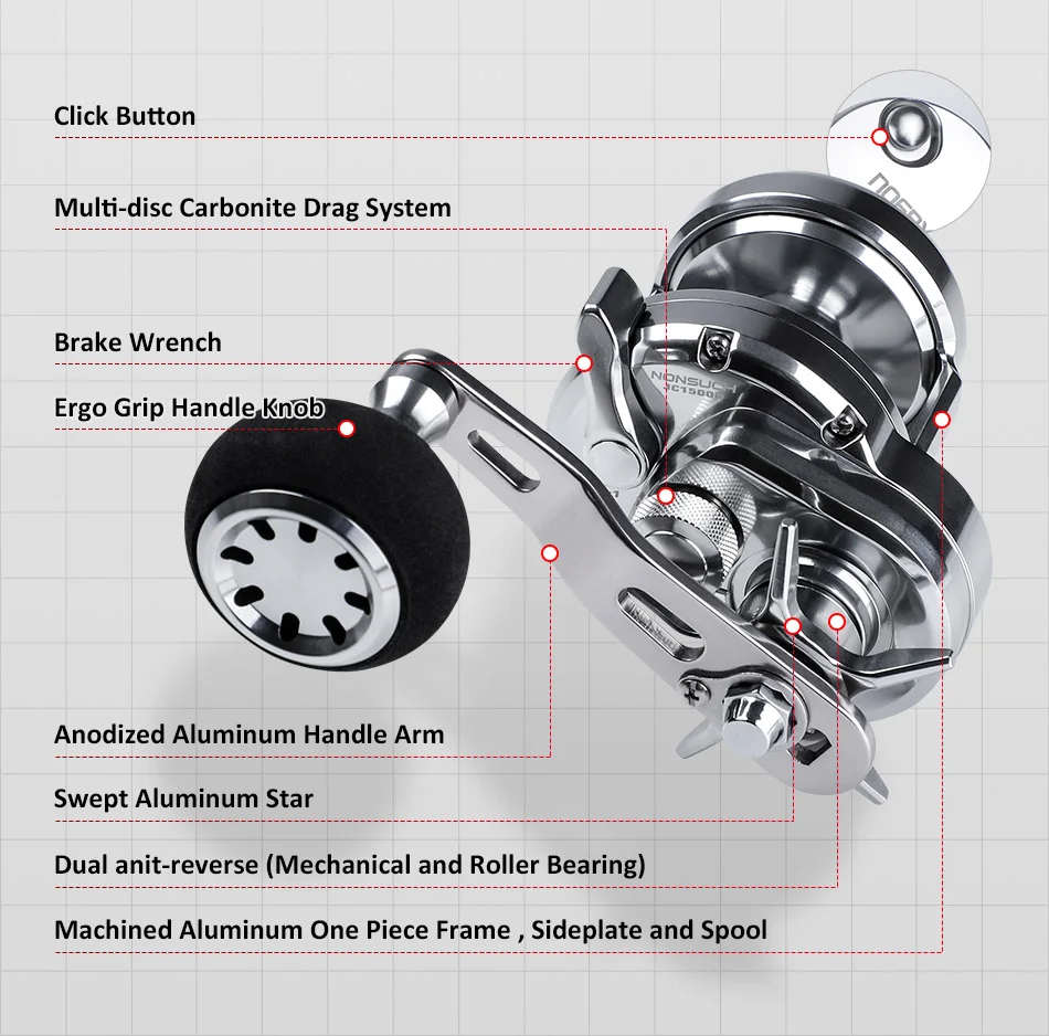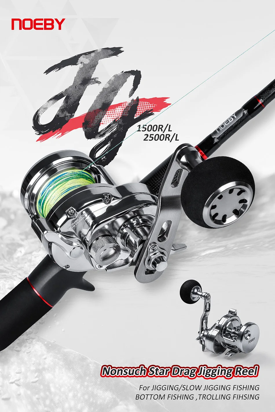 NOEBY Slow Jigging Fishing Reel Saltwater Boat Reel Aluminum JG1500 2500 Trolling Casting Right Left Handle Drum Reels
