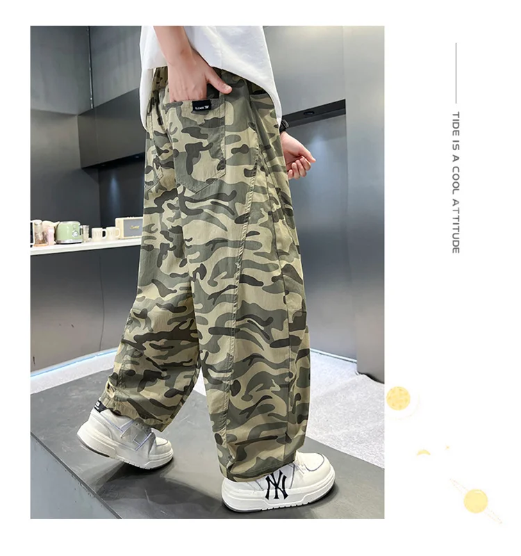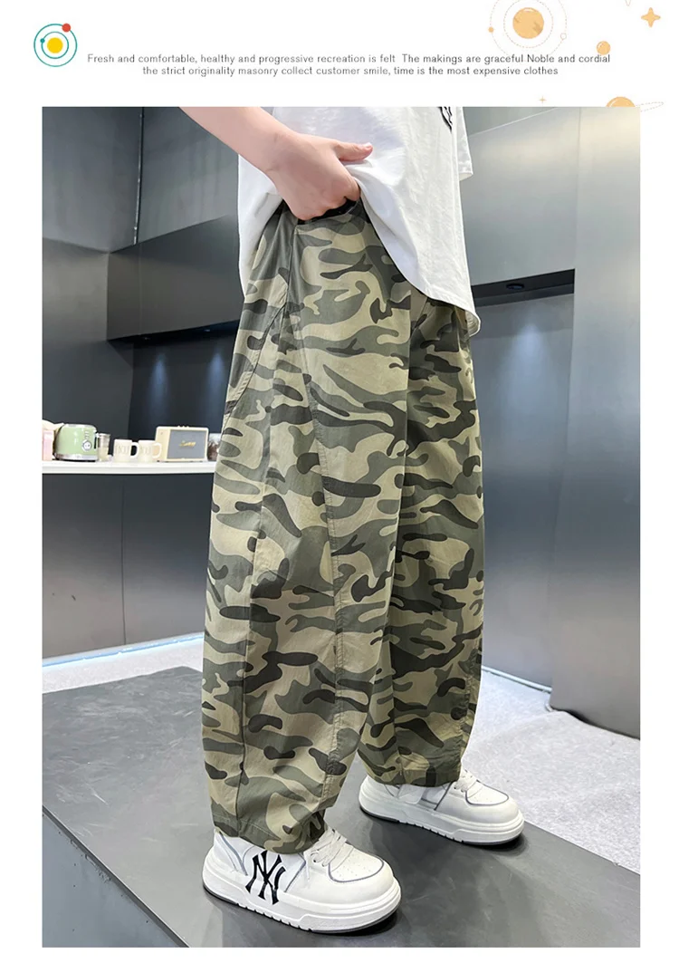 Thin Style Kids Summer Camouflage Pants For Teens Boy Tactical Trackpants Children Casual Sports Camo TrousersStyle:Boys Spring PantsDesign: Latest Design & New ArrivalOccasion: Party,Cocktail,WeddingModel Photo: 100% In-Kind Shooting
